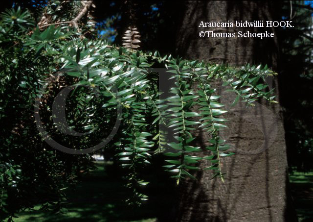 - Native, from New Zealand (whole plant) Agathis robusta - Cultivated, at Buenos Aires Botanical Garden, Argentina (branch) Araucaria angustifolia - Cultivated, at Buenos Aires Botanical Garden, Argentina (branch) Araucaria araucana - Native, from Chile (habitat) Araucaria araucana - Native, from Chile (whole plant) Araucaria araucana - Native, from Chile (whole plants) Araucaria araucana - Native, from Chile (trunk) Araucaria bidwillii - Cultivated, at Singapore Botanical Garden (whole plant) Araucaria bidwillii - Cultivated, at Singapore Botanical Garden (branch) Araucaria bidwillii - Cultivated, at Buenos Aires Botanical Garden, Argentina (branch) Araucaria columnae - Cultivated, at Singapore Botanical Garden (whole plant) Araucaria sp. - Image from Yamasaki Lab. Plant Photo Gallery, from Andasibe, Madagascar (branch) |