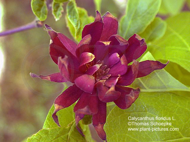 plant) Calycanthus floridus - Cultivated, at Arboretum of Greifswald Botanical Garden, Germany (branch in flower) Calycanthus floridus - Cultivated, at Arboretum of Greifswald Botanical Garden, Germany (flower) Chimonanthus praecox - Image from Yamasaki Lab. Plant Photo Gallery, from Hiroshima, Japan (branch in flower) |