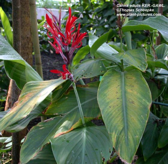 - Cultivated, at Greifswald Botanical Garden, Germany (whole plant) Canna edulis - Cultivated, at Greifswald Botanical Garden, Germany (inflorescence) Canna indica - Image from Yamasaki Lab. Plant Photo Gallery, from Philippines, Los Banos (whole plant) |