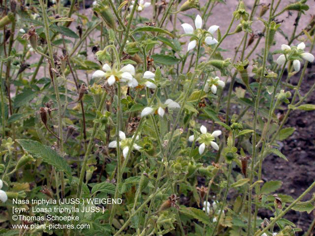 (whole plant) Nasa triphylla - Cultivated, at Botanical Garden of Goettingen, Lower Saxony, Germany (flower) Nasa triphylla - Cultivated, at Botanical Garden of Goettingen, Lower Saxony, Germany (flower) |